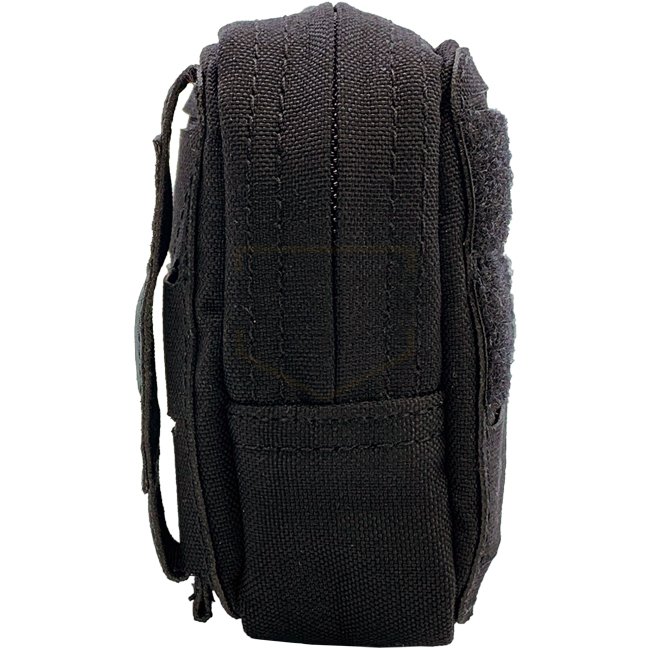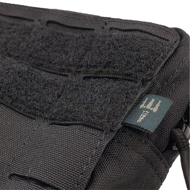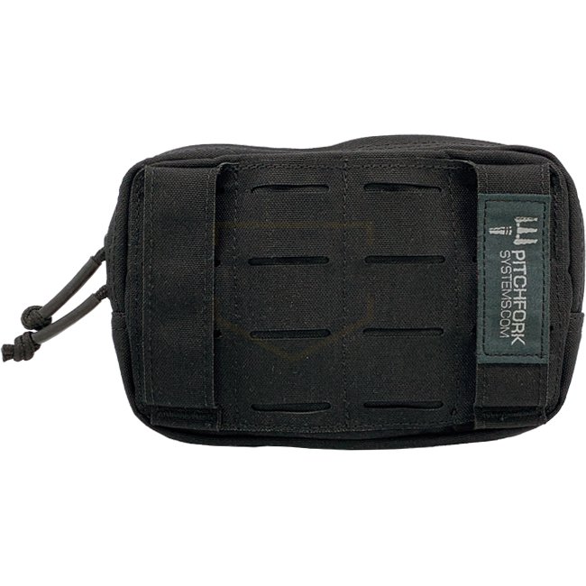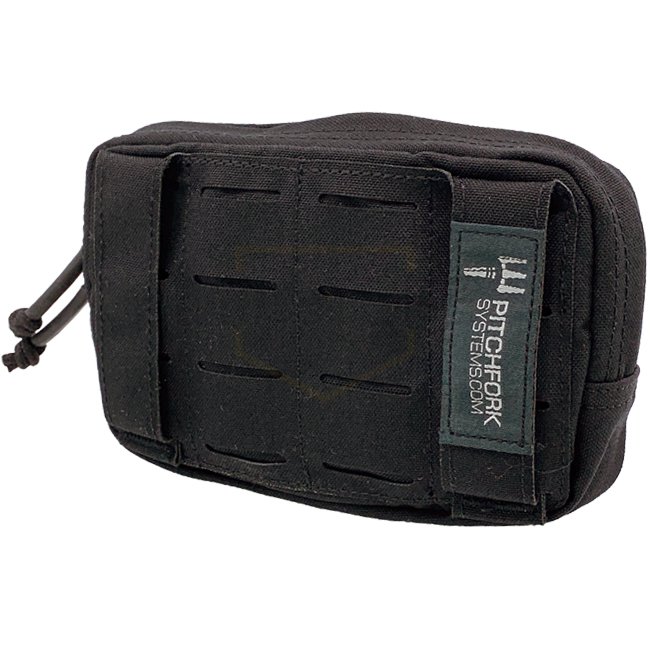 Pochette Utilitaire Horizontale Pitchfork Petite en Noir avec système MOLLE, bandes Velcro, boucles élastiques et fermeture éclair YKK. Idéale pour ranger les accessoires de manière sécurisée.