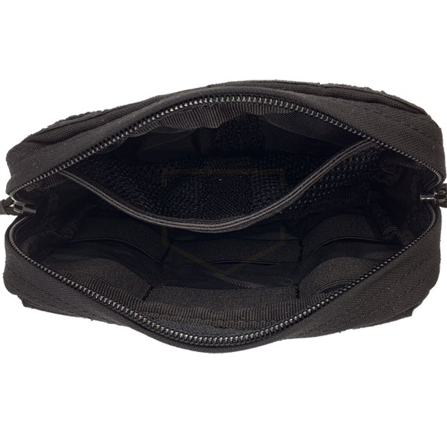La pochette utilitaire horizontale petite est livrée avec une surface système MOLLE ainsi que deux bandes velcro pour les patches. À l'intérieur, deux rangées de boucles élastiques et une poche en filet de l'autre, qui peut être divisé verticalement au moyen de velcro. Cela peut stocker en toute sécurité un tas d'accessoires.