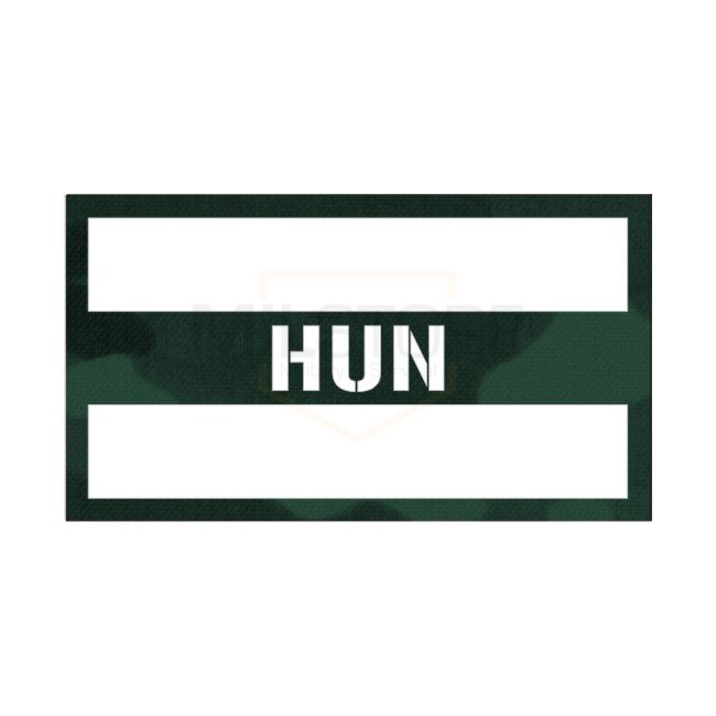 Pitchfork Hungary IR Écusson à Imprimer en design Multicam, présentant des dimensions de 90 x 50 mm et fabriqué avec un film IR imprimé sur le devant et une surface à crochet au dos.