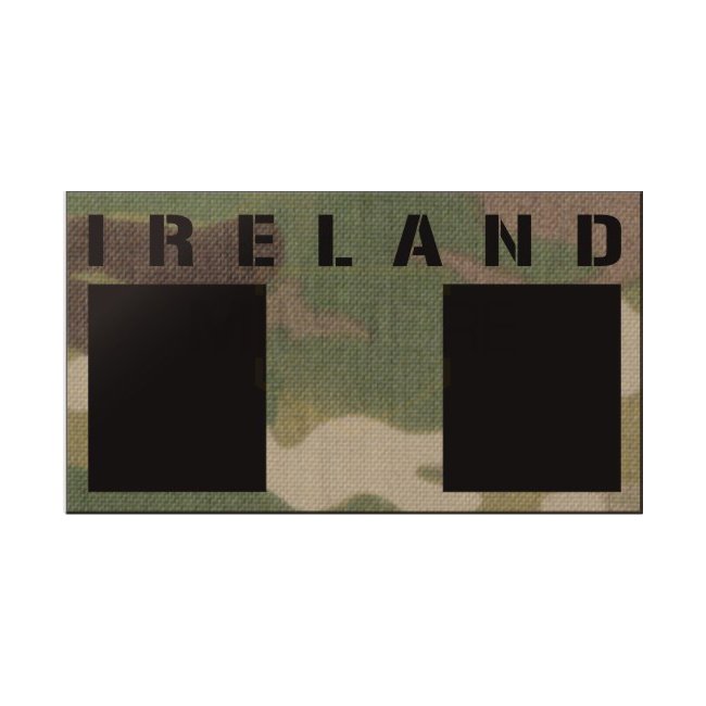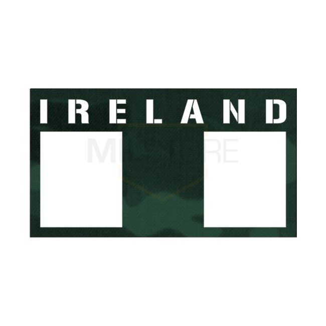 Fourche Pitchfork Irlande avec patch imprimé en Multicam. Face avant en feuille IR imprimée, dos avec surface à crochet. Dimensions 90 x 50 mm.