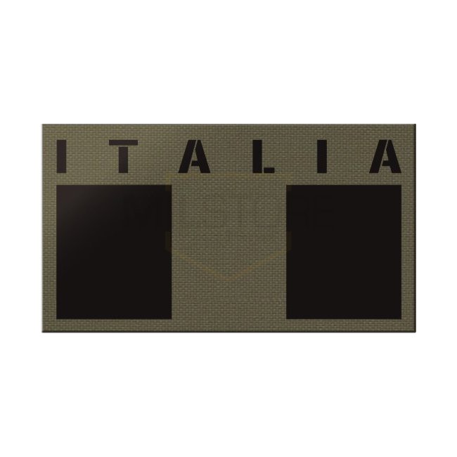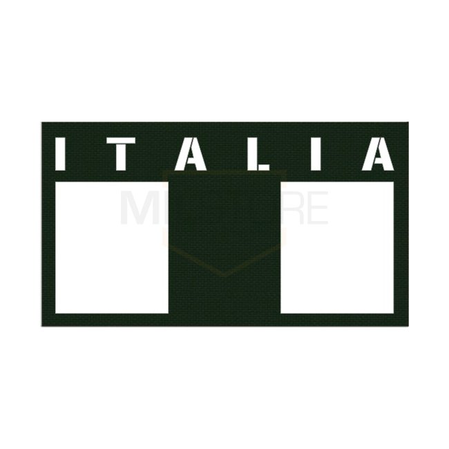 Fourche de haute qualité Pitchfork Italy IR Print Patch en vert ranger. Avant en feuille IR imprimée; arrière avec surface à crochet. Dimensions : 90 x 50 mm.