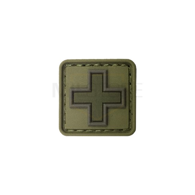 Fourche Médic Croix Patch - Olive, patch 3D pour pochettes médicales. Avec velcro. Dimensions : 25 x 25 mm.