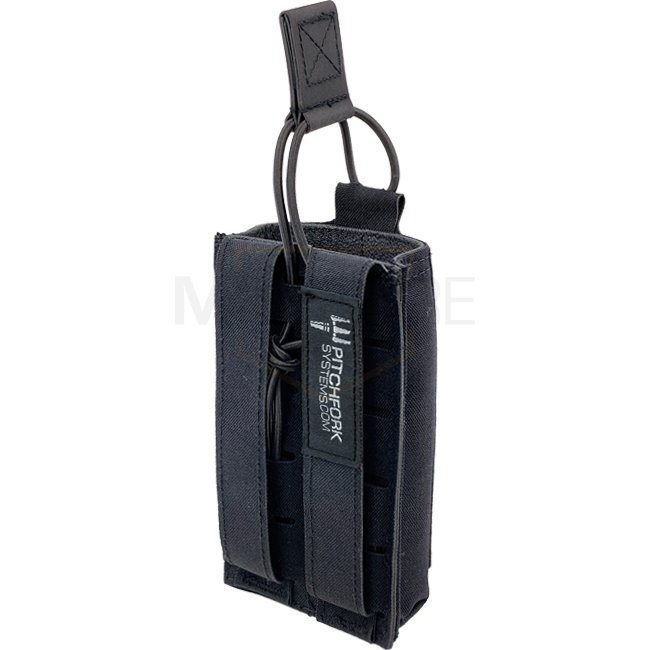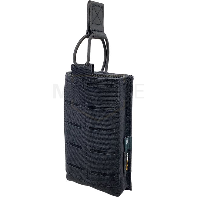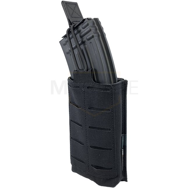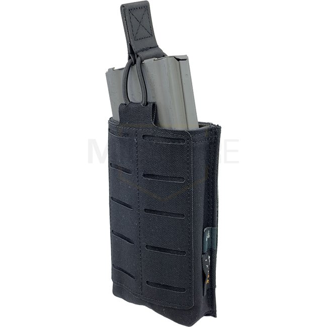 La Open Single Rifle Magazine Pouch peut garder tous les chargeurs 5.56 / .223 habituelles, même les chargeurs SIG et AK47/74 conviennent parfaitement (les chargeurs G36 ne conviennent pas). La languette Hypalon, hautement résistante et légèrement élastique, est réglable en longueur. Pour une meilleure adhérence, l'intérieur de la pochette est doublé d'un matériau antidérapant. La face avant présente une surface LaserCut basée sur le système MOLLE, qui peut être utilisée pour monter des poches supplémentaires.