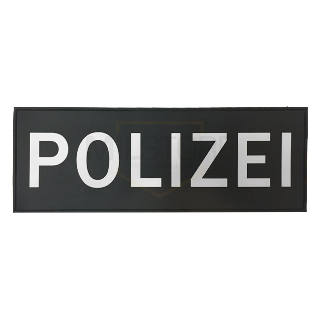Écusson Pitchfork Polizei - Grand : Blanc sur écusson en caoutchouc noir avec dos Velcro, 90 x 250mm.
