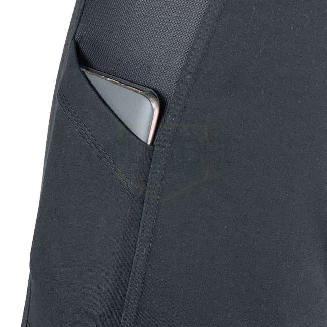 Sur les côtés et sous les bras, il est doté d'une maille légère, douce et respirante, qui assure le refroidissement nécessaire dans les situations chaudes. Sur les côtés, on trouve également des poches pour un smartphone ou d'autres objets plats. Les traversées de câbles permettent un acheminement dissimulé des écouteurs ou autres câbles. Les poches intégrées sur les bras supérieurs avec fermetures à glissière YKK ont également des entrées de câble des deux côtés. Du velcro sur les bras et sur la poitrine permet d’appliquer des patches de nom, des insignes de grade et d’autres.