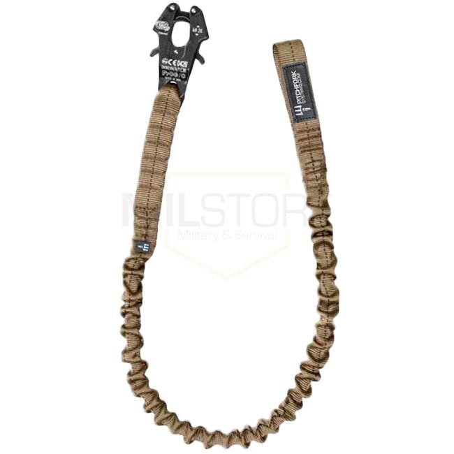 Lanière de sécurité de retenue Pitchfork de haute qualité en couleur Coyote pour s'assurer sur des navires, véhicules ou hélicoptères. Dispose d'une boucle Kong FROG utilisable d'une seule main pour un attachement rapide aux points d'ancrage.