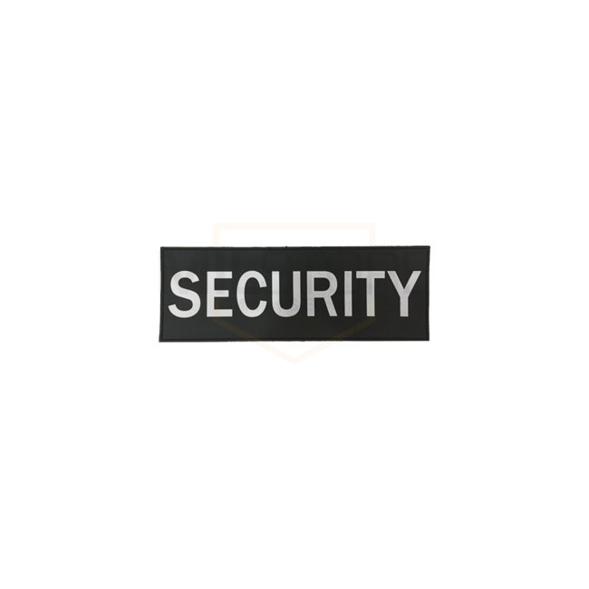 Écusson de Sécurité Pitchfork - Petit : Blanc sur écusson en caoutchouc noir avec dos Velcro, 30 x 90 mm.