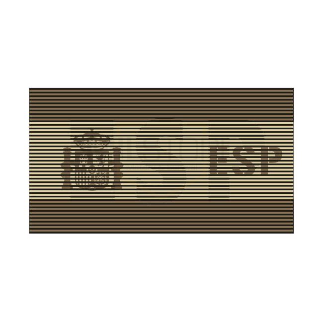 Fourche compacte avec doubles patchs IR de couleur coyote. L'avant présente une impression en feuille IR pour une reconnaissance facile, tandis que l'arrière possède une surface à crochet pour une fixation sûre. Les dimensions sont de 90 x 50 mm.