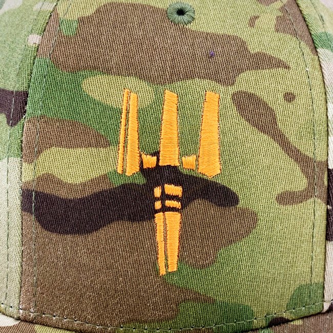Casquette FlexFit originale avec Trident à l'avant et écriture Pitchfork Systems subtile à l'arrière.