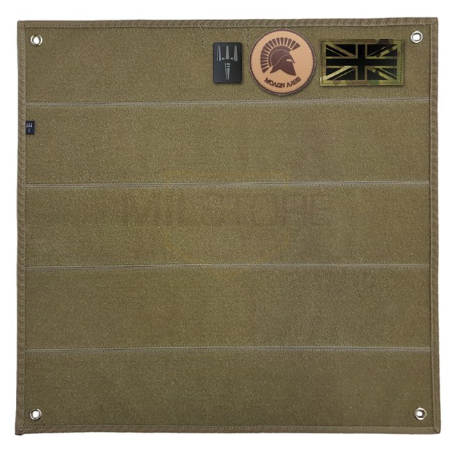 Un panneau velcro de couleur tan de haute qualité mesurant 50x50 cm, parfait pour exposer des écussons, avec des œillets métalliques à chaque coin pour une fixation facile. Écussons non inclus.