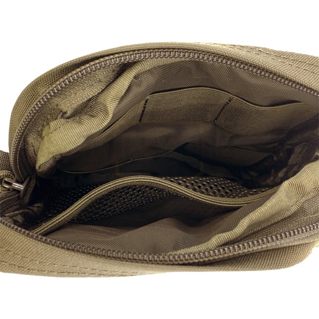 La pochette utilitaire verticale petite est livrée avec une surface système MOLLE ainsi que deux bandes velcro pour les patches. À l'intérieur, deux rangées de boucles élastiques et une poche en filet de l'autre. Cela peut stocker en toute sécurité un tas d'accessoires. Alternativement, la pochette peut également être utilisée pour une trousse de secours personnelle.