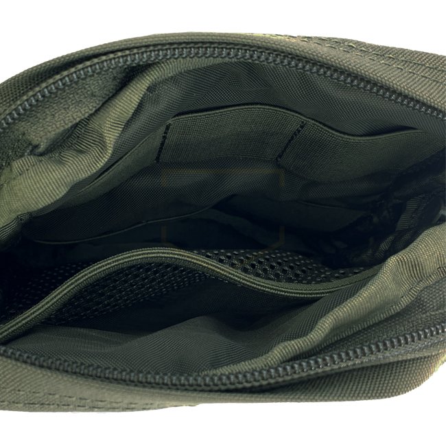 La pochette utilitaire verticale petite est livrée avec une surface système MOLLE ainsi que deux bandes velcro pour les patches. À l'intérieur, deux rangées de boucles élastiques et une poche en filet de l'autre. Cela peut stocker en toute sécurité un tas d'accessoires. Alternativement, la pochette peut également être utilisée pour une trousse de secours personnelle.