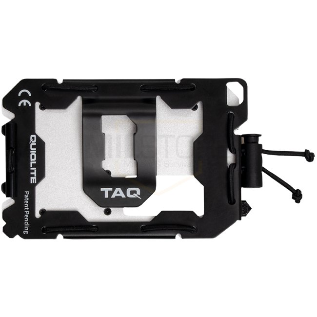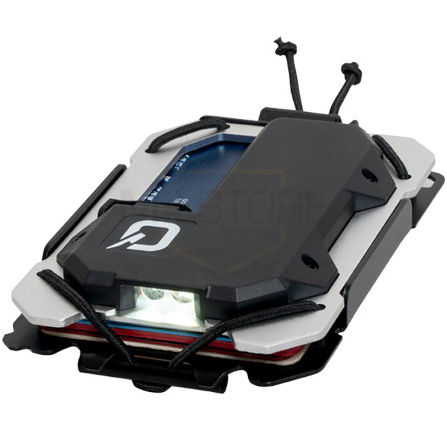 Portefeuille Tactique QuiqLite TAQ - Aluminium : Portefeuille tactique avec lampe torche LED rechargeable USB, Stroboscope de sécurité, ouvre-bouteille, tournevis, pointe brise-verre, mousqueton
