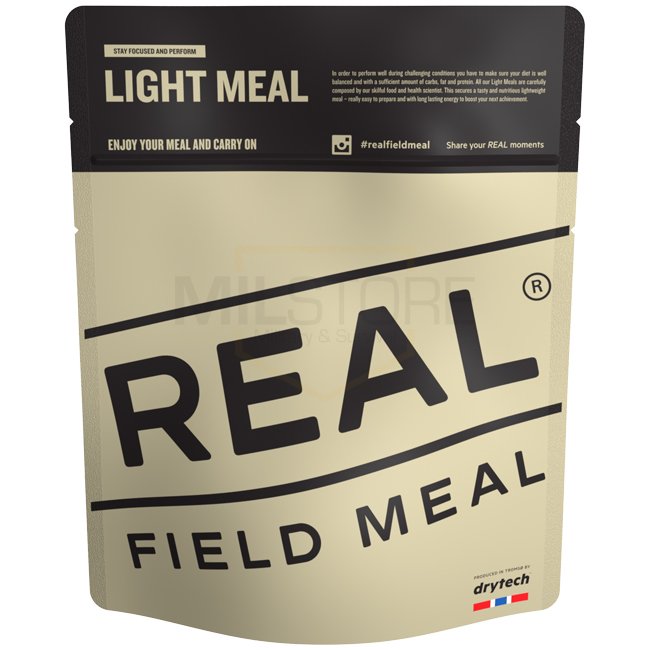 Pour être performant dans des conditions difficiles, vous devez vous assurer que votre alimentation est bien équilibrée, avec une quantité suffisante de glucides, de graisses et de protéines. REAL Field Meal est préparé par une équipe compétente de chefs, vous assurant un repas nutritif et léger - facile à préparer et riche en saveur naturelle.