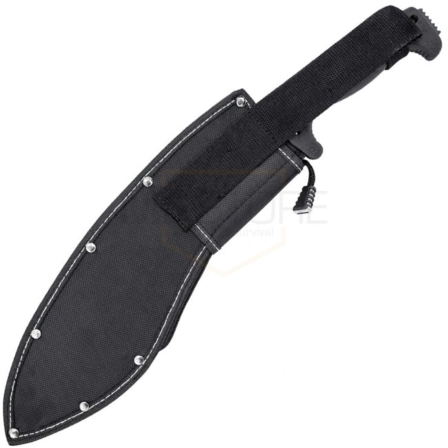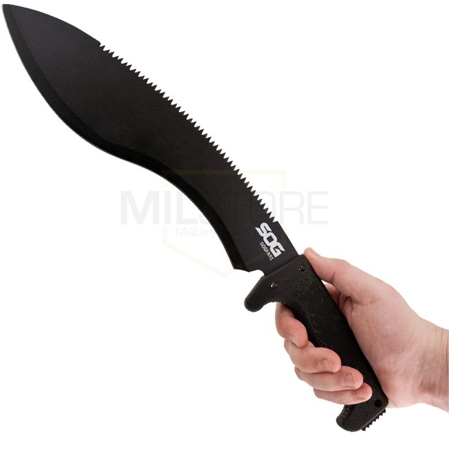 Cette machette SOG Kukri en noir offre puissance et précision. Conçue avec une lame de 305 mm en acier 3cr13 et un manche en Kraton pour une manipulation optimale. Pesant 425 g et mesurant 457 mm de longueur totale.
