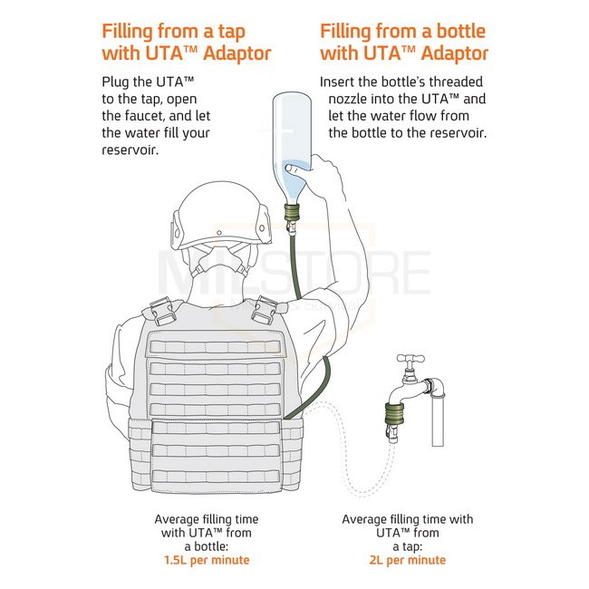 Nouveau pack d'hydratation de SOURCE profil bas, spécialement conçu pour l'intégration dans les gilets pare-balles. L'utilisation maximale de la technologie de profil bas de SOURCE réduit la profondeur de la carrier qui en fait un système d'hydratation profil vraiment bas. Le resorvoir ILPS permet pour un volume de liquide de 2 l lorsqu'il est inséré dans un gilet ou 3 l à l'intérieur d'un sac a dos etc.