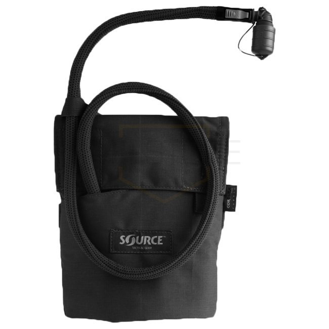 "SOURCE Kangaroo 1L gourde pliable et pochette - Noir. Système de gourde/pfont hydratation modulaire avec construction en polyéthylène à 3 couches. Sans goût™, doublure en verre. Système de fixation MOLLE pour un montage facile. Poids : 320g. Hauteur : 19