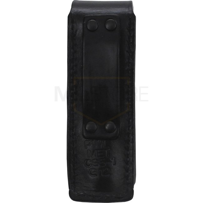 Support en cuir élégant et durable pour le spray de défense Surplus. Conception pratique avec boucle de ceinture et mécanisme à ressort interne sécurisé. Hauteur de 13 cm pour un accès facile. Couleur : Noir.