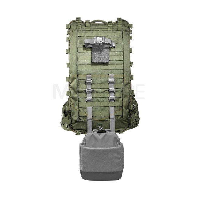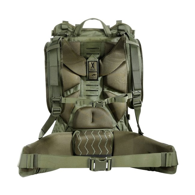 Porte-base entièrement ajustable Tasmanian Tiger en Olive, conçu pour transporter des charges lourdes avec confort et facilité. Comprend un système de port interne de sac à dos haute performance avec ceinture amovible. Système MOLLE pour des fixations per