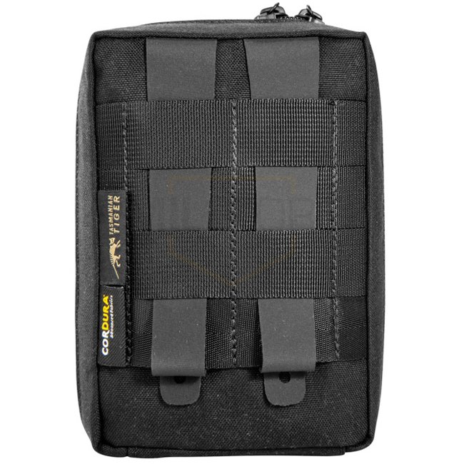 Trousse de premiers soins remplie pour un usage quotidien et une personne, avec fixation MOLLE. Comprend une poignée, une fermeture éclair, un compartiment divisé, des pansements, un paquet de bandages, des plâtres, des gants, une couverture de secours, e