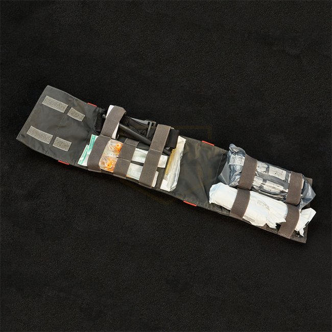 Trousse de premiers secours avec système d'accès rapide. À fixer sur l'appui-tête du siège de voiture, avec panneau amovible et boucles configurables. Série TacVec. Dimensions : 19 x 14 x 5 cm. Fabriquée en CORDURA 700 den. Dispose d'une fermeture à scrat