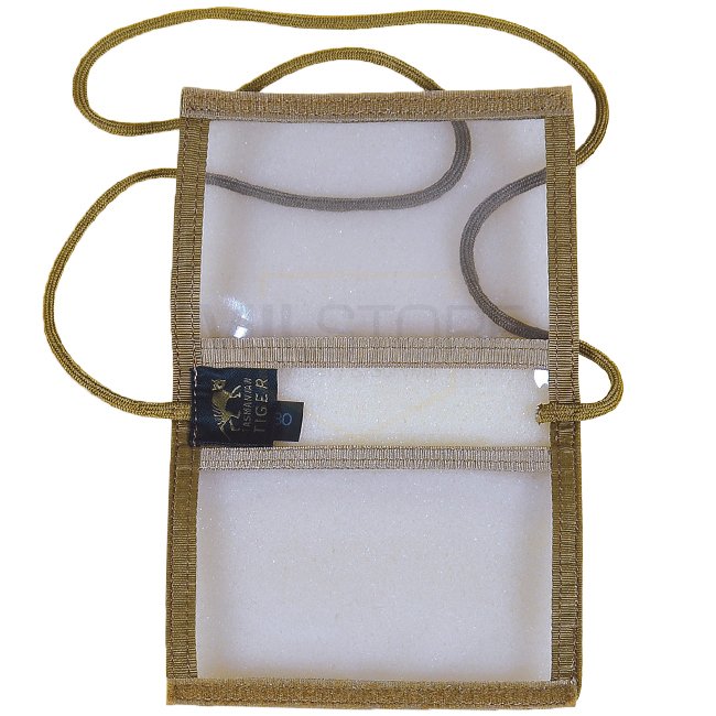 Porte-carte d'identité transparent avec un design pliable pour deux cartes d'identité. Fabriqué en vinyle et sangle en nylon, visible des deux côtés. Dimensions : 10 x 14 cm, Poids : 45 g.
