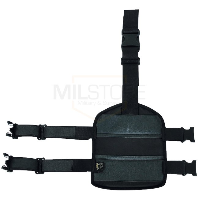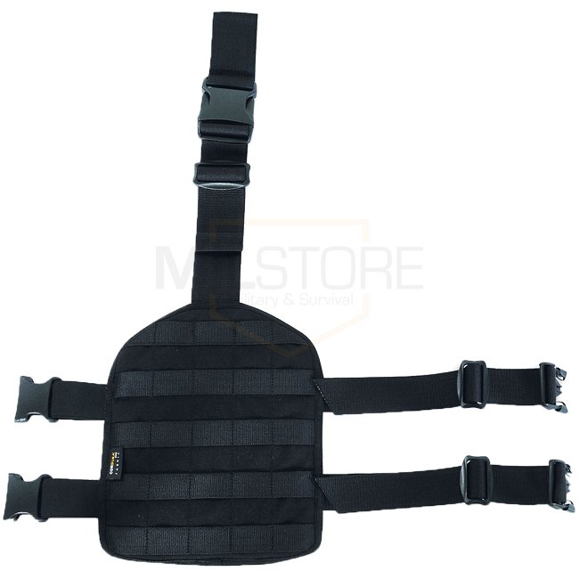 Base de Jambe Tasmanian Tiger - Noir, plaques de jambe MOLLE avec boucles pour fixation à la ceinture, ajustables avec des sangles de jambe antidérapantes. Plaque de système MOLLE préformée et rigide pour étuis, magazines et accessoires. Fabriqué en CORDU