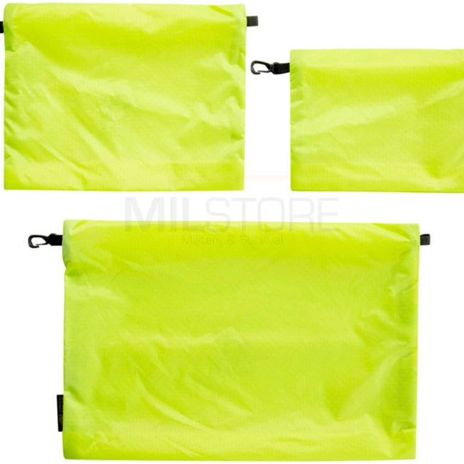 Ce set comprend trois pochettes en mesh flexibles de tailles différentes, conçues pour organiser efficacement l’équipement dans un sac à dos ou un système modulaire.