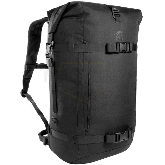 Le Tasmanian Tiger Sentinel 35 WP - Noir est un sac à dos de mission étanche avec un volume de 35 litres, une fermeture à enroulement, et du MOLLE découpé au laser sur les côtés. Adapté pour un équipement léger, éventuellement encombrant, il est doté d'un