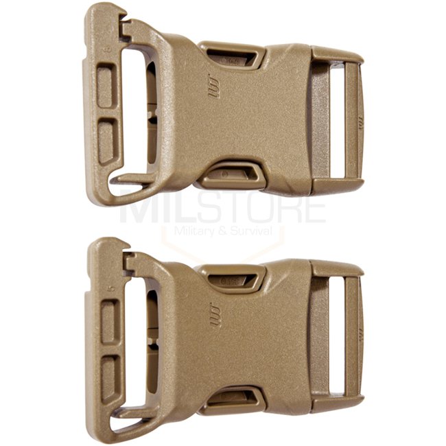 Ces boucles rapides robustes sont la version féminine adaptée aux sangles de 25 mm. Conçues pour une fixation verticale sur systèmes MOLLE ou ganses, elles conviennent parfaitement pour réparations ou extensions modulaires.