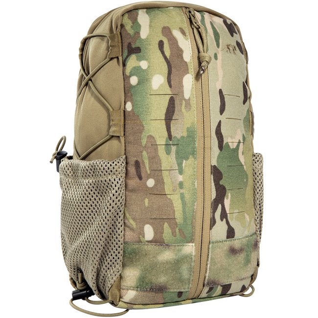 La TT Tac Pouch 11 d'un volume de 7 litres offre un accès rapide grâce à la fermeture éclair centrale. La division intérieure fonctionnelle du compartiment principal avec bande auto-agrippante MOLLE et cordon élastique peut être utilisée par exemple pour du matériel médical. Le sac possède également des poches latérales en filet, par ex. pour les magazines et MOLLE au design découpé au laser ainsi qu'une zone Velcro sur le devant. L'ensemble du système peut être compressé à plat avec un cordon élastique. Le sac est également équipé d'une préparation système d'hydratation et de la sortie correspondante.