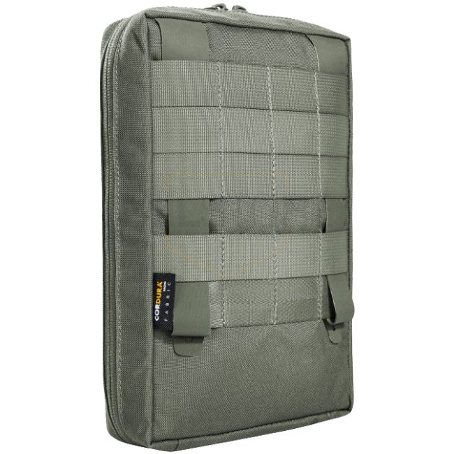 Poche compacte Tasmanian Tiger Tac 7.1 IRR en olive gris pierre, avec 4 poches de 3 tailles différentes. Comprend une ouverture zippée extra large, des poches en filet plates, des boucles élastiques et un système MOLLE.