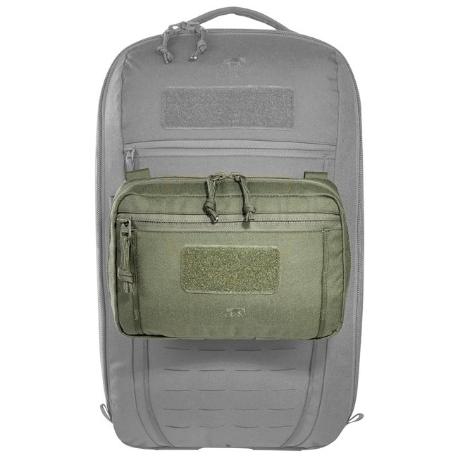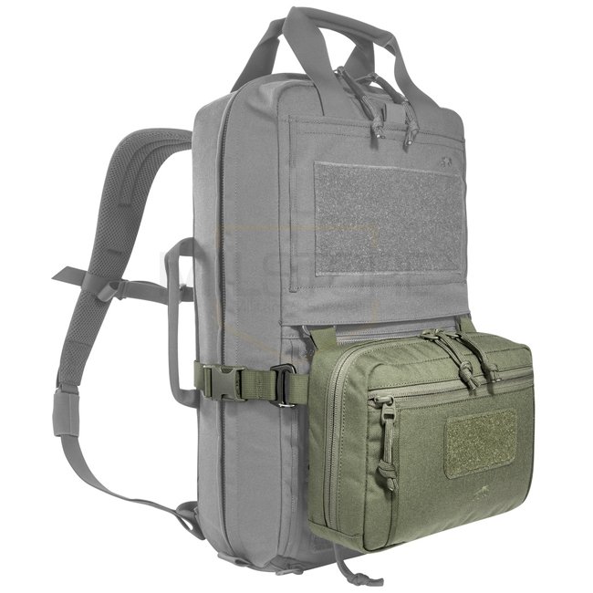 Le sac dispose d'un système inversé MOLLE amovible pour la fixation aux porte-assiettes et aux sacs à dos. De plus, il peut être accroché avec des boucles au TT Survival Pack ou à d'autres surfaces MOLLE avec des boucles appropriées. Il existe également un passage pour un passant de ceinture de 50 mm. À l'intérieur se trouvent des poches plates en filet, des boucles élastiques et une grande surface auto-agrippante MOLLE.