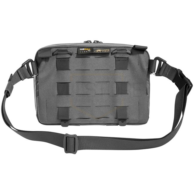 Le sac dispose d'un système inversé MOLLE amovible pour la fixation aux porte-assiettes et aux sacs à dos. De plus, il peut être accroché avec des boucles au TT Survival Pack ou à d'autres surfaces MOLLE avec des boucles appropriées. Il existe également un passage pour un passant de ceinture de 50 mm. À l'intérieur se trouvent des poches plates en filet, des boucles élastiques et une grande surface auto-agrippante MOLLE.