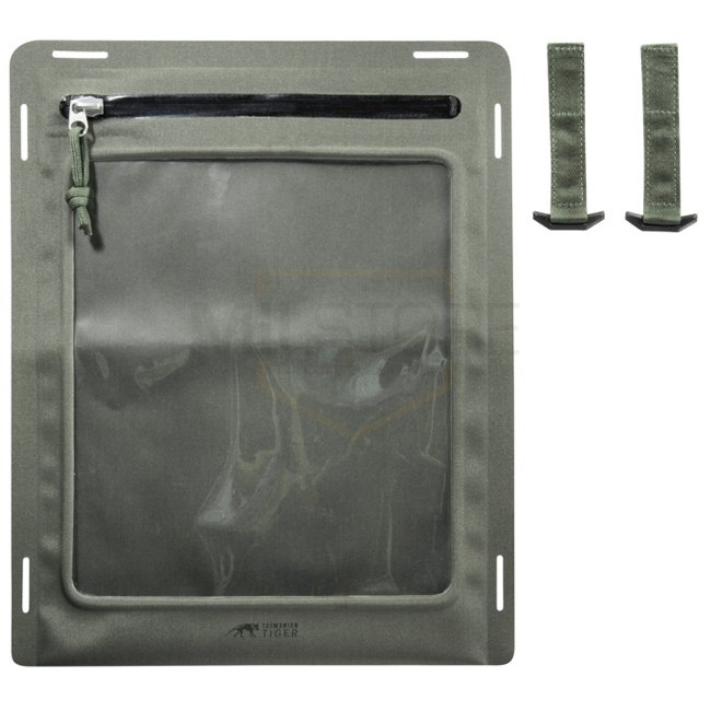 Pochette pour tablette Tasmanian Tiger W-Pouch A4 WR - Noir : Pochette résistante à l'eau avec fenêtre visible pour écran tactile. Adaptateur pour Molle-velcro inclus.