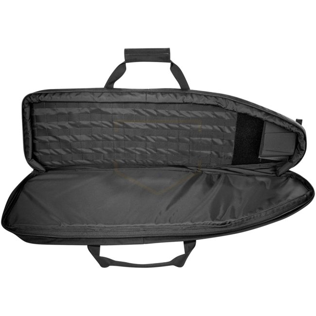 Ce sac à armes rembourré est conçu pour une arme de portée moyenne et propose un compartiment principal ainsi qu’une poche extérieure dotée de trois pochettes magzine cousues, de surfaces velcro MOLLE pour personnalisation et d’une poche filet zippée.
