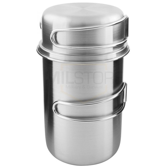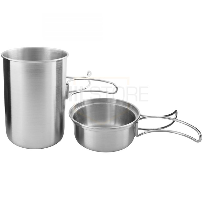 Gobelet Tatonka 850 de haute qualité en acier inoxydable 18/8 avec une capacité de 850 ml. Livré avec un couvercle profond qui peut servir de poêle ou de bol. Poignées pliables, échelle de volume et facile à nettoyer. Parfait pour le trekking !