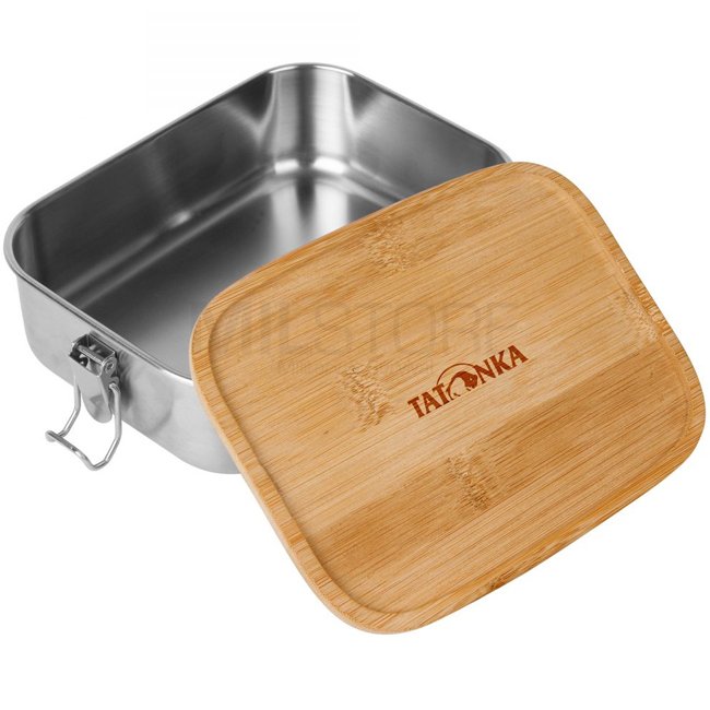Tatonka Lunch Box I 1000 Bamboo : Grande boîte à lunch en acier inoxydable avec couvercle en bambou, sûr pour les aliments, durable, incassable