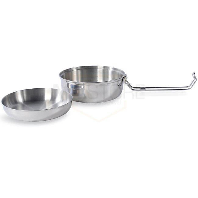 Ensemble de cuisson compact et durable pour le camping : Tatonka Scout Set 1,5L, fabriqué en acier inoxydable 18/8 sans danger pour les aliments. Comprend une casserole, un couvercle, un bol et une assiette. Verrou de pince pour une fermeture sécurisée et