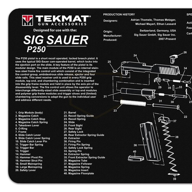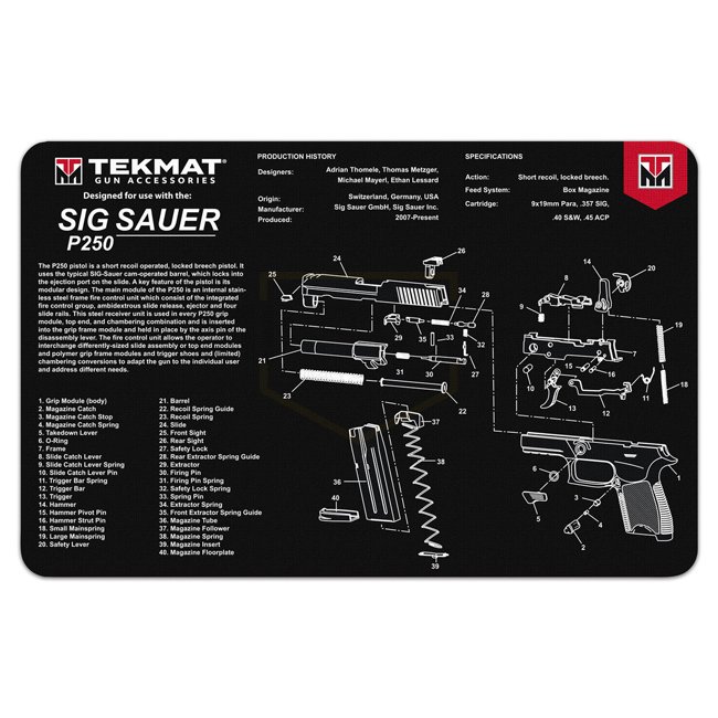 TekMat Tapis de Nettoyage & Réparation - SIG P250 : Tapis polyvalent de 3mm d'épaisseur, parfait pour le nettoyage, les réparations ou comme tapis de travail. Dimensions 43 x 28 cm.