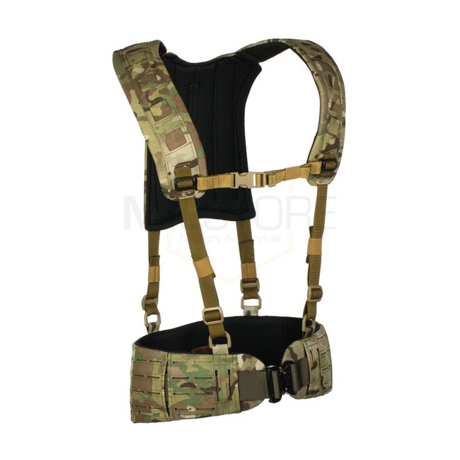 The 4-Point H-Harness is designed for tactical operations, offering optimal weight distribution and comfort. This harness is compatible with various tactical belts, such as PT1, PT2, and PT4. It helps to alleviate strain by distributing the weight of heavy equipment carried on the belt and ensures the user remains agile and mobile during missions.