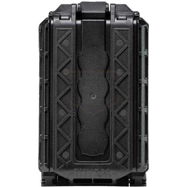 Le THYRM CellVault-5M propose un stockage modulaire pour différentes tailles de batteries, incluant un joint étanche à l'eau, un verrouillage sécurisé et des sangles d'attachement MOLLE. Construction en polymère durable. Dimensions : 16,5 x 91,4 x 5,0 cm.