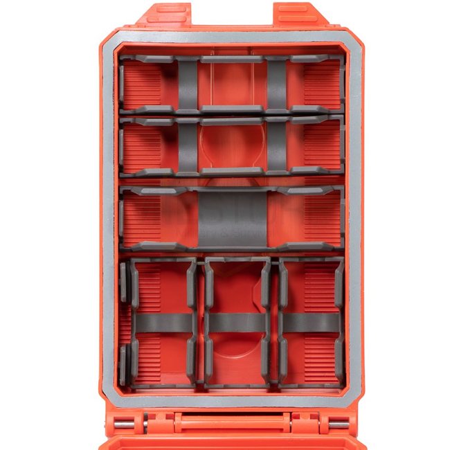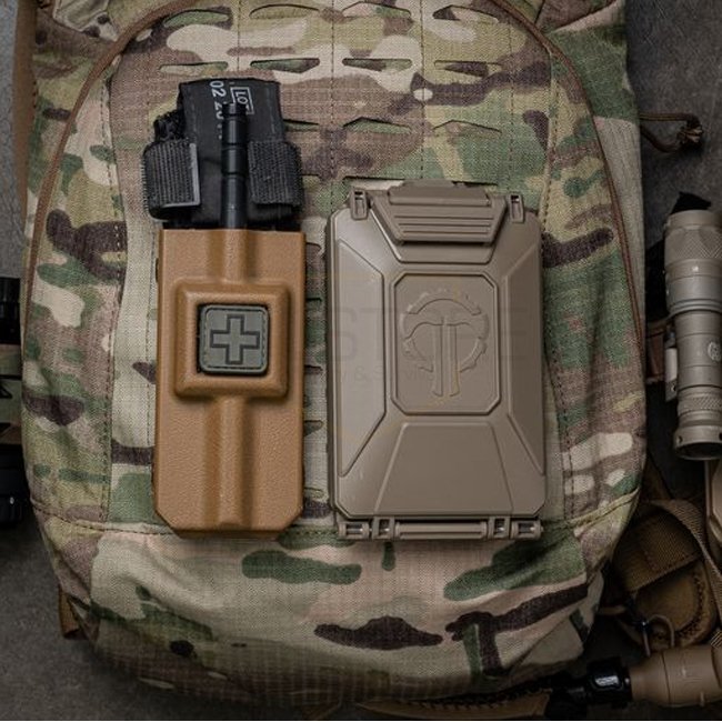 THYRM CellVault-5M Rangement modulaire pour batteries - Olive, construction en polymère étanche et durable, avec inserts modulaires pour différentes tailles de batteries. Loquet verrouillable, sangles d'attache MOLLE, et taille compacte. Dimensions : 16,5
