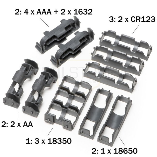 • Trois inserts 2 x CR123 (également appelés inserts 16650).