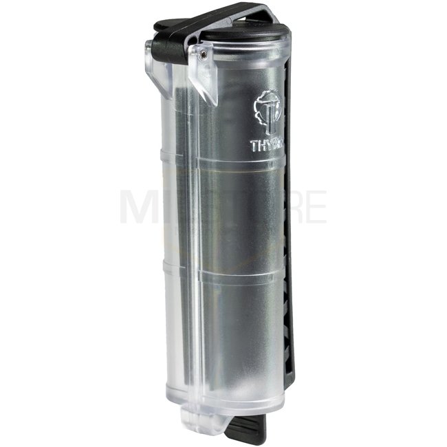 Compact et polyvalent THYRM CellVault XL Rangement de Batteries en Transparent & Noir. Stockez des piles, équipement de survie, fournitures de premiers soins, objets de valeur, et plus encore. Dimensions : 12,95 x 2,8 x 3,3 cm. Poids : 45g.
