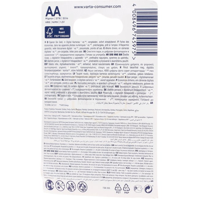 Piles rechargeables Varta AA 2600mAh 4pcs - Piles rechargeables durables et écologiques idéales pour les appareils à forte consommation.