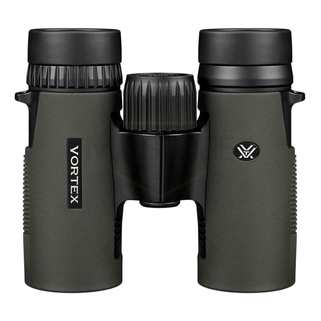 Jumelles Vortex Optics Diamondback HD 10x32 avec grossissement de 10x, objectif de 32mm, dégagement oculaire de 14mm, champ de vision linéaire de 113m, champ de vision de 6.5°, pupille de sortie de 3.2mm, mise au point rapprochée de 1.8m et un poids de 45
