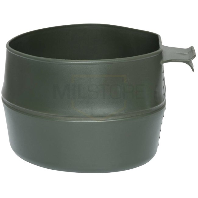 Léger tasse pliable. Après avoir déplié il prend la forme d'un gobelet en plastique stable pour les boissons froides et chaudes (fusion preuve). Prend un peu de place une fois plié.