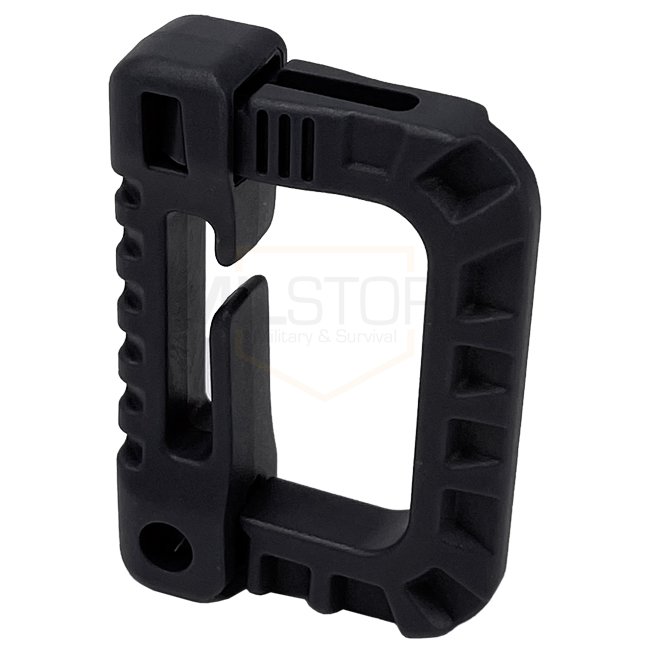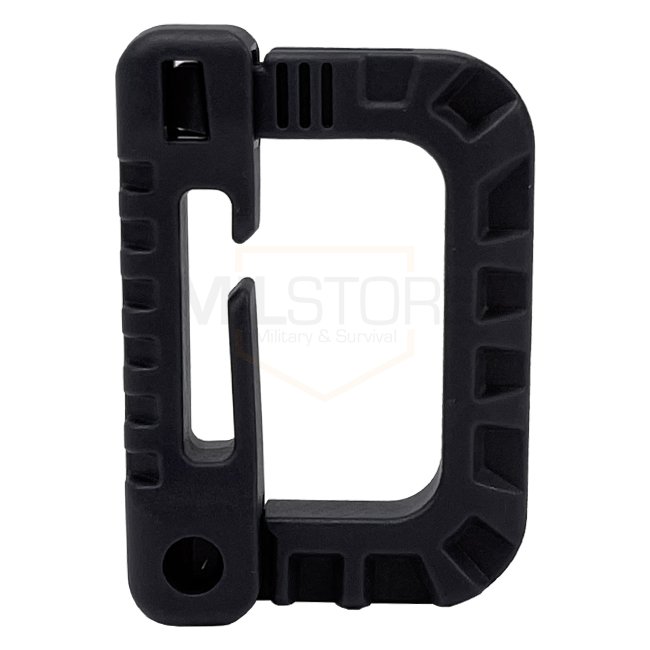 Fixez rapidement l'équipement sur le système MOLLE avec le carabiner en plastique Woojin polyvalent en noir. Dimensions : 50 x 38 x 12 mm. Supporte des sangles allant jusqu'à 25 mm / 1 pouce de large. Non adapté pour l'escalade ou les missions de sauvetag