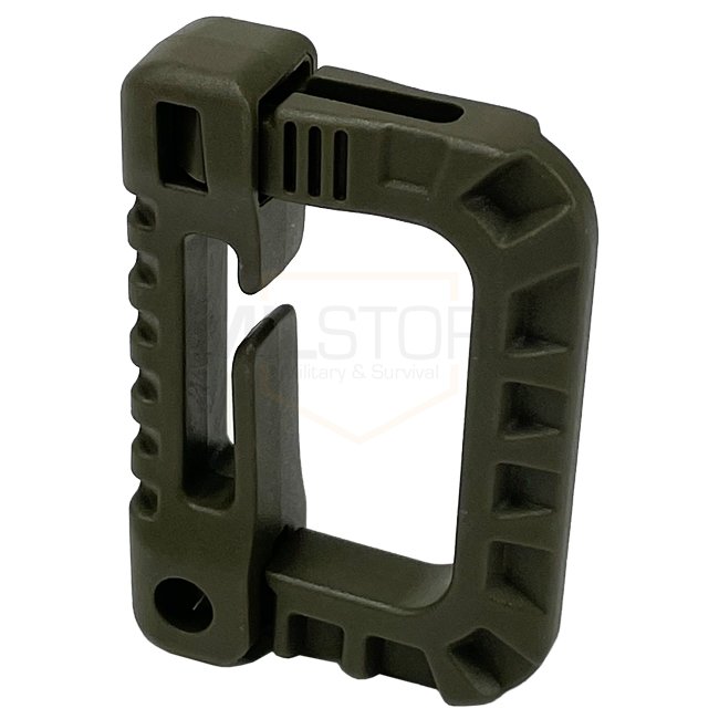 Carabine en plastique très durable conçue pour un fastenage rapide de l'équipement sur le système MOLLE. Dimensions 50 x 38 x 12 mm, largeur maximale de sangle 25 mm / 1 pouce. Non adapté à l'escalade ou aux missions de sauvetage.